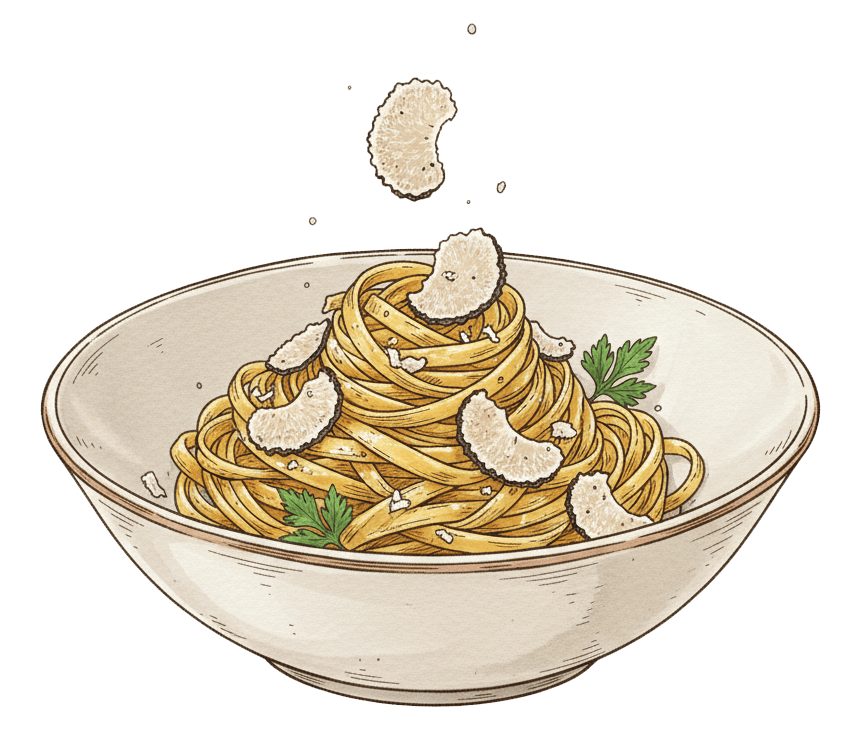 Potrai assaporare il tartufo fresco appena raccolto, esaltando ogni sua nota aromatica con un calice di vino del territorio, per un finale che celebra la convivialità e i sapori autentici di Montalcino.